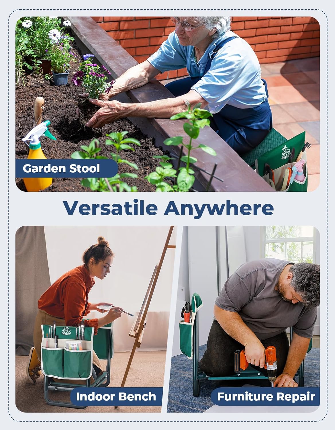 𝙀𝙡𝙙𝙚𝙧𝙡𝙮-𝙛𝙧𝙞𝙚𝙣𝙙𝙡𝙮 𝘿𝙚𝙨𝙞𝙜𝙣: An extra EVA kneeling pad is provided to ensure blood circulation and reduce pain in the knee when kneeling. Armrests on both sides ensure that the elderly can stand up easier after long hours of gardening, making it an excellent gift for grandparents.