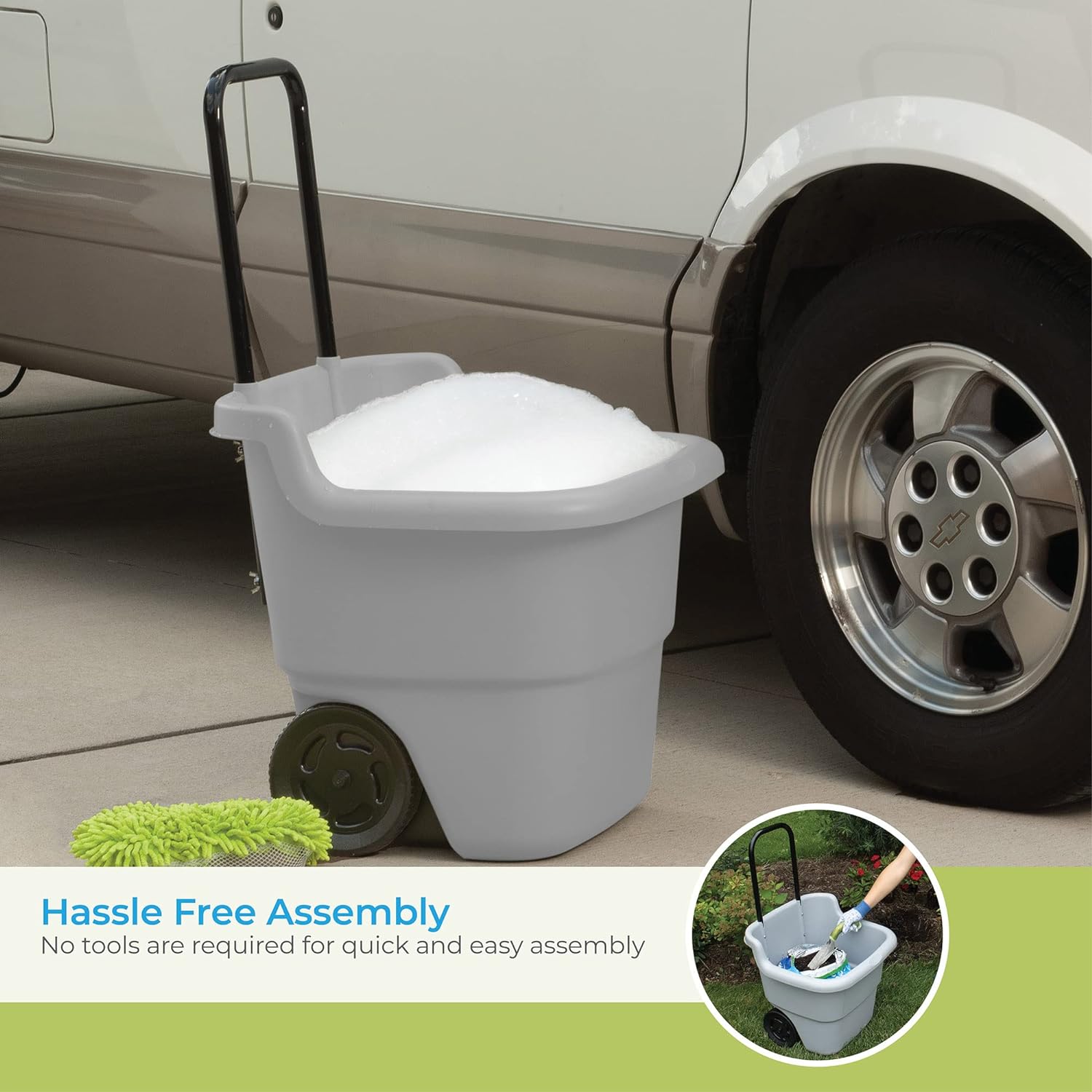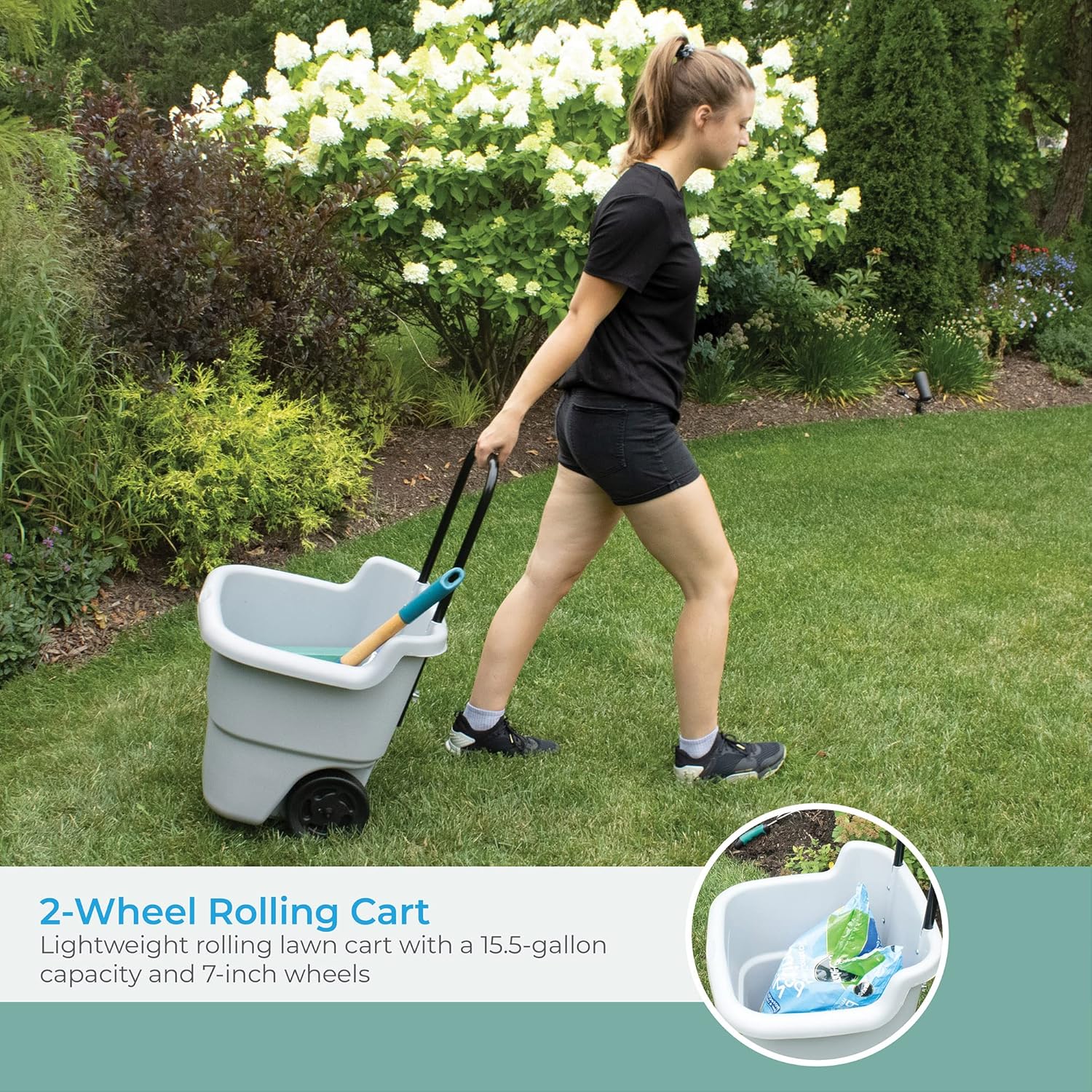 2-WHEEL ROLLING CART: Lightweight rolling lawn cart with a 15.5-gallon capacity